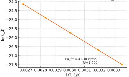Энергия активации (Eₐ) оценивалась по уравнению Аррениуса: