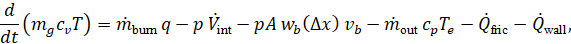 Рассмотрим уравнения 0D-модели, которая описывает горение пороха (до и после вылета пули); давление и температуру газов
