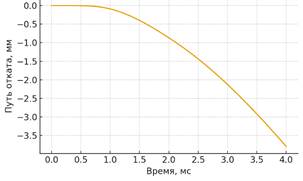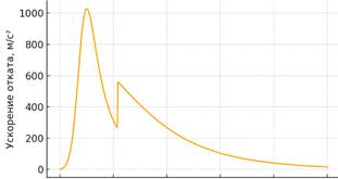 . Функция силы отдачи использована для расчета ускорения, скорости и пути свободного отката винтовки ar(t),