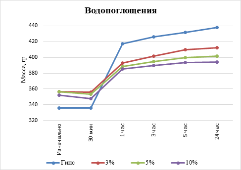 Водопоглощаемость образцов пластифицированного гипса