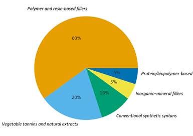 Figure 1. Approximate share of materials used for leather filling worldwide