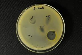 Рисунок 3. Результаты исследования антибактериальной активности синтезированных комплексных соединений против Escherichia coli.