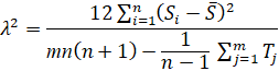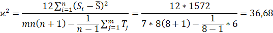 Значимость коэффициента конкордации, полученного при работе данных экспертов, проверяют по критерию 𝝒2 Пирсона (7):