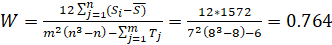 что превосходит величину W=0.6 и свидетельствует о хорошей согласованности ранговых оценок у семи экспертов и высоком значении коэффициента конкордации.