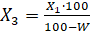 Х1 - mass fraction of nitrogen in the test sample, %; W - moisture content in the test sample, %.