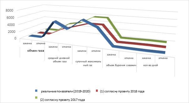 В таблице 2 приведены прогнозные показатели хранилища в Ходжаабадском подземном хранилище газа [12, 13].