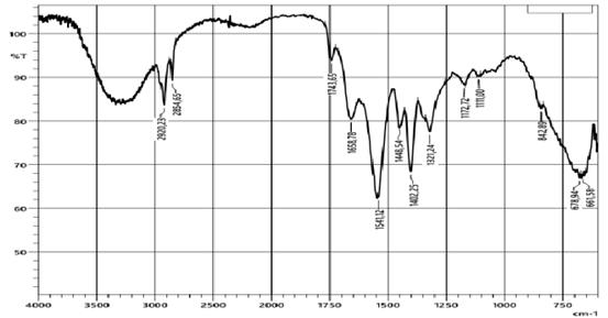 В ИК-спектре широкая полоса поглощения в области 3300–3400 см⁻¹ соответствует валентным колебаниям групп –OH и –NH. Полосы поглощения в интервале 2920–2850 см⁻¹ относятся к валентным колебаниям групп –CH₂– и –CH–, что подтверждает сохранность основной углеродной цепи полимера. Сохранение слабого поглощения в области 2240–2250 см⁻¹ указывает на неполноту процесса гидролиза, то есть на присутствие в цепи PAN определённого количества нитрильных групп –C≡N. Сильное поглощение, наблюдаемое в области 1650–1600 см⁻¹, соответствует валентным колебаниям групп –C=O (амид I) и –COO⁻. Полоса в области 1540–1550 см⁻¹ относится к амидным колебаниям типа амид II. В интервале 1400–1450 см⁻¹ фиксируются симметричные колебания групп –COO⁻, а в области 1250–1320 см⁻¹ — колебания связей –C–N и –C–O. Полосы поглощения в диапазоне 1100–1000 см⁻¹ относятся к связям –C–O и –C–N, что ещё раз подтверждает наличие в полимерной цепи кислородсодержащих функциональных групп. Таким образом, по данным ИК-спектра ГИПАН установлено присутствие карбоксильных (–COO⁻), амидных (–CONH–), гидроксильных (–OH) и частично сохранённых нитрильных (–C≡N) групп. Наличие указанных функциональных групп обеспечивает хорошую растворимость ГИПАН в воде и его способность объединять коллоидные частицы в крупные флокулы за счёт механизма полимерного мостика. В связи с этим применение гибридной системы ГИПАН–сульфат алюминия в процессах очистки технических сточных вод методом коагуляции–флокуляции научно обосновано как использование высокоэффективного флокулянт-коагулянтного комплекса.