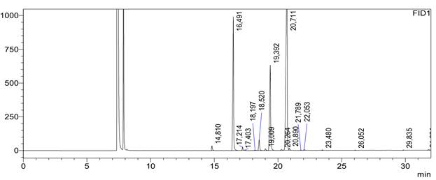 Рисунок 2. Хроматографическое распределение жирных кислот рафинированного экстракционного хлопкового масла