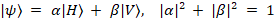где ∣H〉 и ∣V〉 - ортогональные состояния линейной поляризации, а α, β- комплексные амплитуды.