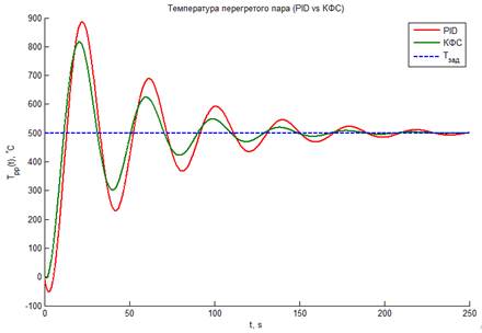 Представленные графики подтверждают, что квантово-фотон-спиновый метод обеспечивает более быстрое достижение установившегося режима и более эффективную компенсацию отклонений температуры перегретого пара, что свидетельствует о его практической применимости для управления теплоэнергетическими объектами [20].