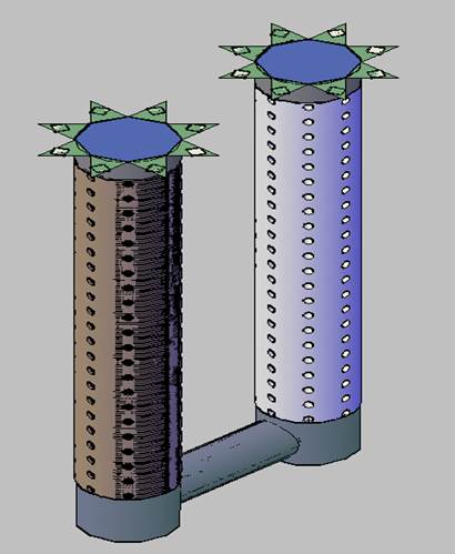 “Механическое дерево” представляет из себя два высоких цилиндрических столба диаметром около 1200 мм и в высоту 9 метров каждый. Диски расположены на расстоянии 0,05 метров друг от друга (рис.6).