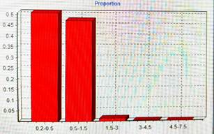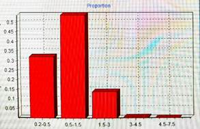 As can be seen in Table 3-4, the average length of cellulose fibers obtained from the 3- and 5-year-old pavlovian tree, when measuring 3807 fibers in the 3-year suspension of pavlovian cellulose in the Fiber Tester apparatus, is 0.620 mm; width - 0.006 mm, and average length - 0.884 mm when measuring 3254 fibers in a 5-year suspension of pavlovian cellulose; width - 0.007 mm.