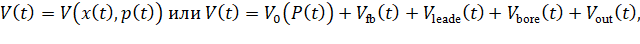 Ключевой особенностью является то, что объём газовой камеры V(t) задаётся строго геометрической функцией V(x,P), сформированной в модуле «Часть 2. Модель расчета действующих сил и моментов»: гильза → фрибор → пульный вход → канал → (опционально) внешняя зона; при этом физический механизм расширения гильзы учитывается через гладкий переход η(P) по двум порогам давления. Для кинетики горения используется интегральная форма закона Вьей с постепенным вовлечением заряда (функция Iign(t)) и параметризацией по экспериментальным данным и справочным источникам производителей порохов. Для постдульной стадии приведена модель истечения через «открывающееся сопло» и реактивной силы струи на плоскости дульного среза.