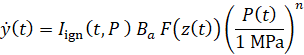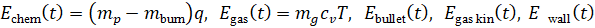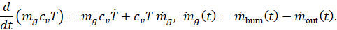 Рассмотрим уравнения 0D-модели, которая описывает воспламенение и горение пороха до и после страгивания и вылета пули, давление и температуру газов