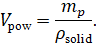 - объем твердой фазы пороха; в данном случае не важно, занимает порох меньше 100% рабочего объема гильзы или наоборот уплотнен, это уже учитывается в расчете свободного объема гильзы;