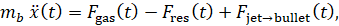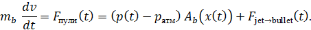 4. описание постдульной стадии через «открывающееся сопло» и изоэнтропическое истечение, позволяющее рассчитать реактивную силу струи на плоскости дульного среза