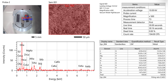 Для проведения исследований мы взяли образцы клинкера из отходов цинкового завода АО "Алмалыкский ГМК" и провели анализы их химического состава и размеров частиц с помощью сканирующего электронного микроскопа (СЭМ). Результаты анализа представлены на рисунке 1.