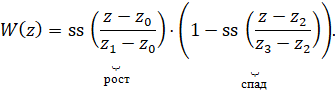 при желании), трапецеидальная форма по x (рост → плато → спад до уровня канала). Где: конус пульного входа