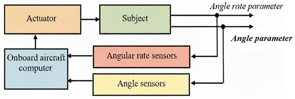 In order to ensure satisfactory performance of flight control systems, accurate measurements of angular velocity along the three axes of the coordinate frame are required. Angular rate sensors therefore constitute a critical component of the control architecture. Sensor accuracy directly influences control quality, as these measurements are incorporated into the feedback loop governing the angular motion of the airborne platform. The output signals of angular rate sensors act as feedback inputs and represent key elements in the development of high-performance control systems. The role and placement of these sensors within the flight control system are illustrated in Fig. 1
