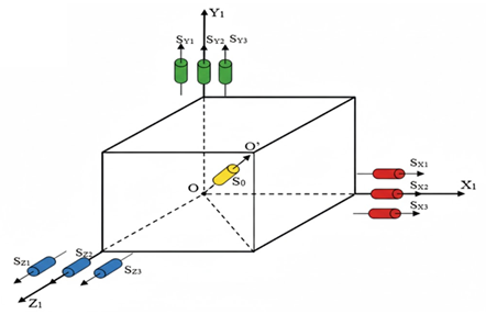 Furthermore, the deployment of three sensors along each axis is intended to enhance measurement redundancy and improve system safety in the presence of faults. For the sensor S₀ located along the diagonal OO′, the corresponding mathematical model can be expressed as follows: