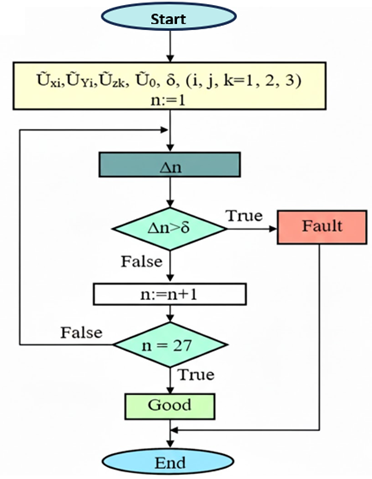 Based on expression (16), a flowchart of the fault diagnosis algorithm for the general case is constructed as follows: