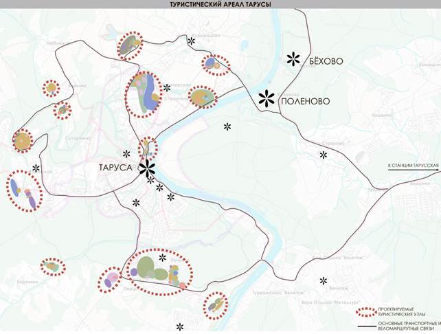 Рисунок 3. Размещение опорных дестинаций туристического ареала Тарусы.