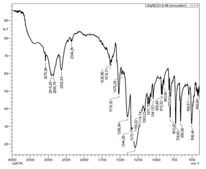 Figure 1. IR spectra of the complex formed by quinazoline‑4(3H)‑one and AgNO₃ (1). (ν, cm⁻¹) |
