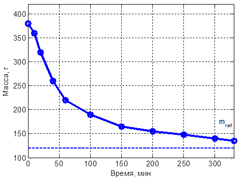 Рисунок 4. Экспериментальная кривая изменения массы лекарственного растительного сырья в процессе сушки