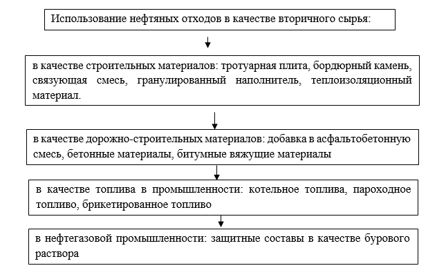 Рисунок 1. Область применения продуктов переработки нефтяных отходов как вторичное сырье