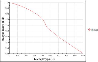 Рисунок 5. Изменение модуля Юнга стали 34ХН3МА в интервале температур фазовых превращений