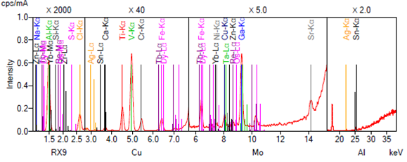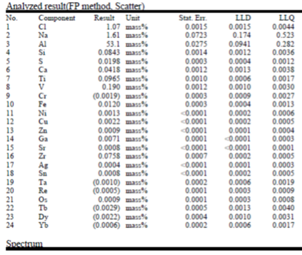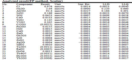 Рисунок 2. Элементный состав оксида алюминия, использованного в ШГХК