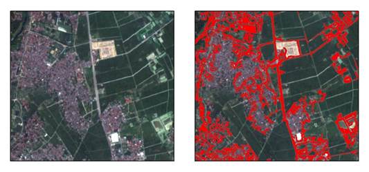 Рисунок 2. Изображение Sentinel-2 города Ханоя и индекс RI