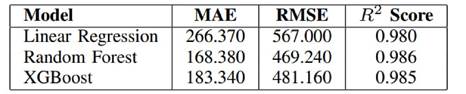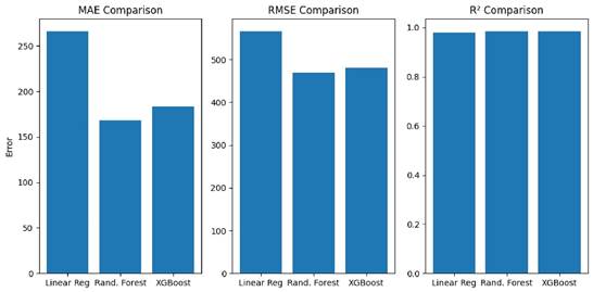 A comparison with related studies shows that previously reported RMSE values for similar datasets typically range from 500 to 800, making the achieved result of 469.24 notably competitive [3; 16]. These findings are consistent with earlier research demonstrating the superiority of ensemble approaches over traditional regression-based methods [3; 4; 16].