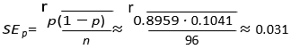 Let p = 86/96 = 0.8959. The binomial standard error is: