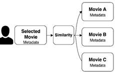 The recommendation process begins when a user selects a movie. The system extracts metadata from that movie and compares it to other movies using cosine similarity. The most similar items are returned as recommendations.