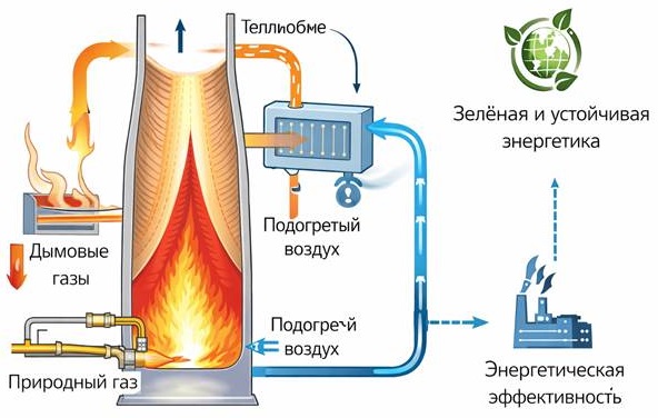 Таким образом, подогрев воздуха реализует принцип внутренней тепловой рекуперации без образования дополнительных отходов.