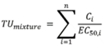 где C_i — концентрация i-го компонента, EC_50,i — концентрация, вызывающая 50% эффект. Критерием потенциальной токсичности смеси служит TU_mixture > 1.