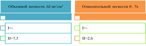 Рисунок 2. Показателей объемной и относительной легкости хлопко-шелковых рисунчатых трикотажных полотен