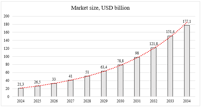 Figure 1. Generative AI market size, USD billion (forecast; compiled by the author based on GMI6094 data)