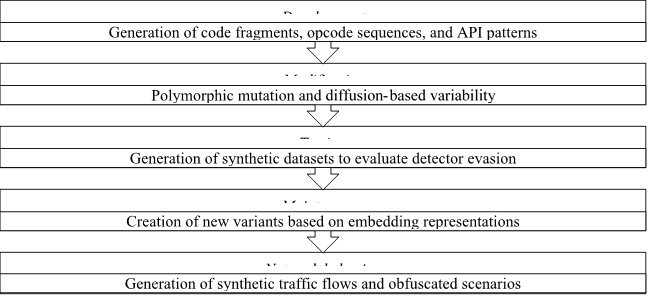 Thus, generative AI transforms the malware lifecycle from a linear process into an iterative model characterized by accelerated variant evolution, since whereas polymorphism was previously achieved through manual code modification, modern GAN, VAE, and diffusion models enable variational generation within a latent feature space, which at minimum significantly reduces development costs and facilitates the scalability of attacks.