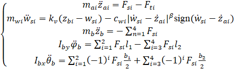 На основе принципа Д’Аламбера система дифференциальных уравнений движения для модели с семью степенями свободы (7-DOF) описывается следующим образом: