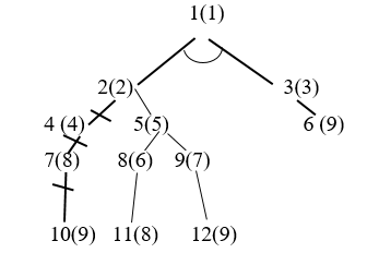 , т.е. образ вершины на дереве показан спереди, а прообраз показан в скобках. Построение явного дерева D=(Y, B) в процессе рекуррентных вычислений обусловлено необходимостью того, что удаление кое-каких элементов из дерева после каждого построения поддерева Di не вызывает препятствий для определения следующего поддерева Di+1, но в сети сделать это невозможно.