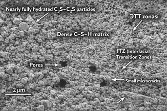 В статье исследованы минералогический состав, физико-механические и микроструктурные характеристики высокомарочного портландцемента. Посредством методов анализа СЭМ и ЭДС были оценены морфология продуктов гидратации, плотность контактной зоны заполнителя (ITZ) и факторы, влияющие на высокую прочность. Результаты подтвердили, что цементный камень обладает плотной структурой, низкой пористостью и высокой ранней прочностью.
