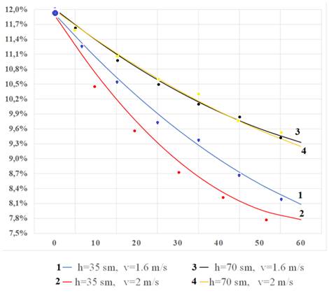 Рисунок 2. Кинетика изменения влажности при начальной влажности хлопка