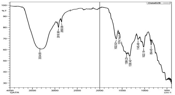 Figure 1. IR spectrum of the lubricating oil synthesized on the basis of Mahsar oil with the participation of additives: grill oil, thiourea, calcium stearate, and polycrotonaldehyde