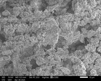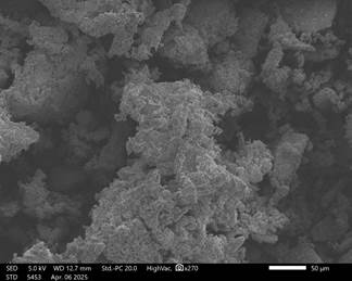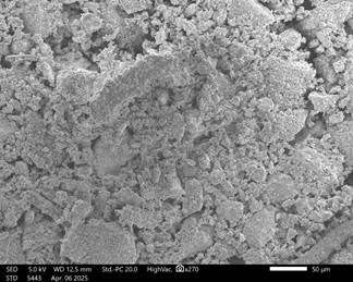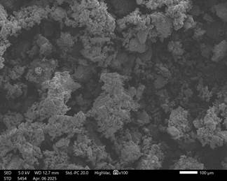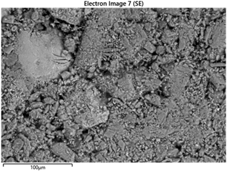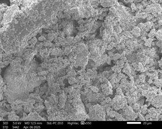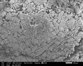 Микроструктурный анализ методом сканирующей электронной микроскопии (SEM) показал формирование плотной агрегированной структуры гранул, образованной взаимодействием гипсовой матрицы с минеральными компонентами фосфорита и глауконита.