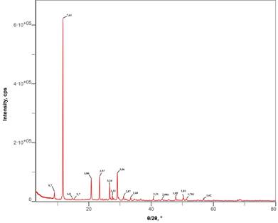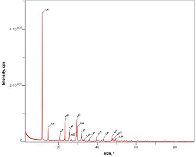 Фазовый состав полученных материалов исследовали методом рентгенофазового анализа (XRD). Рентгенограммы снимали на дифрактометре с CuKα-излучением. Идентификацию кристаллических фаз проводили по характерным дифракционным максимумам.