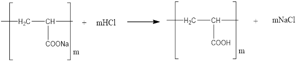 - In the acidic medium, certain segments of the polymer chains become protonated and undergo hydrolysis.
