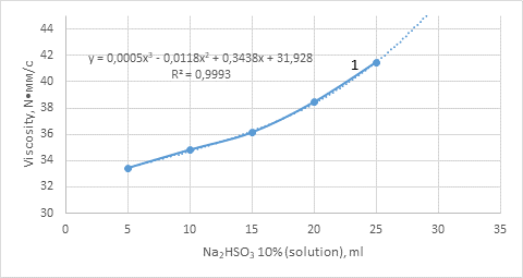 The present study focuses on the modification of HYPAN through reaction with sodium bisulfite, investigating how varying reagent ratios and temperature conditions influence the reaction system's viscosity and the resulting polymer properties. Understanding these relationships is crucial for optimizing processing parameters to achieve desired material characteristics while maintaining process efficiency and product quality. The viscosity of the reaction system serves as a valuable indicator of molecular changes, reflecting polymer chain interactions, molecular weight evolution, and potential structural transitions[10; 11].
