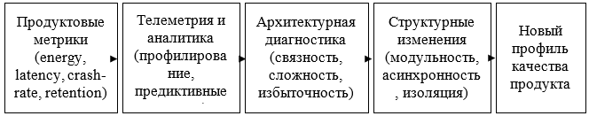 Данная зависимость свидетельствует о прямом влиянии продуктовой метрики «энергетическая эффективность» на необходимость архитектурной переработки модульной структуры, распределения ответственности между слоями и управления жизненным циклом компонентов (Таблица 1).